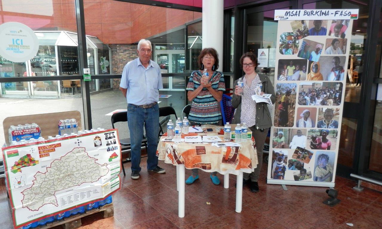 SAMEDI 9 JUIN, l’équipe des bénévoles de MSAI-ROUKO était présente aux entrées du Centre Commercial CARREFOUR de Mont-Saint-Aignan, pour vendre des bouteilles d’eau dont le bénéfice est destiné au financement de nos projets pour la ville « sœur » de Mont-Saint-Aignan.