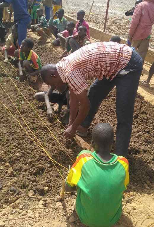 À présent, vient le temps des plantations sous l’œil attentif de Léon Dragbo du Ministère de l’agriculture. Les premières plantations concernent les oignons, puis viendra le tour des choux. Il faut rappeler que ces légumes sont destinés à compléter le quotidien de la cantine. Ils permettront de varier les repas essentiellement composés de Tô (1).